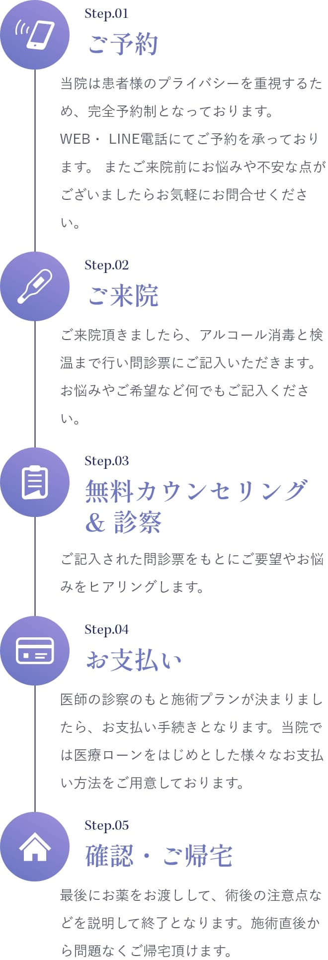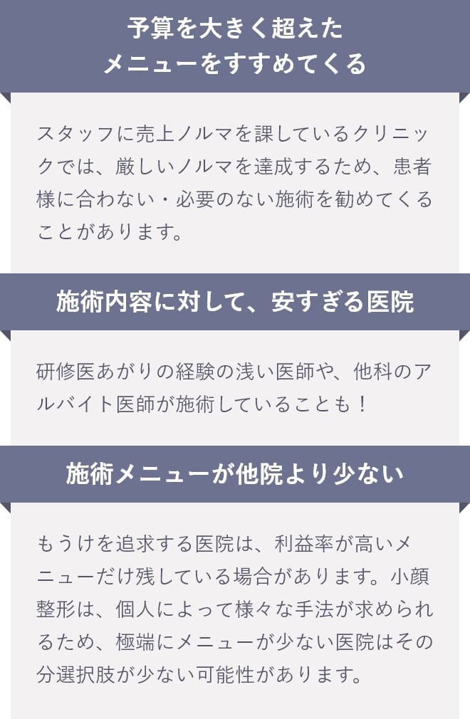 また、他院と迷っている場合は見積もりをお持ちいただくことも可能です。ご予算に合わせた施術方法のご相談も承っておりますので、お気軽にご相談ください。