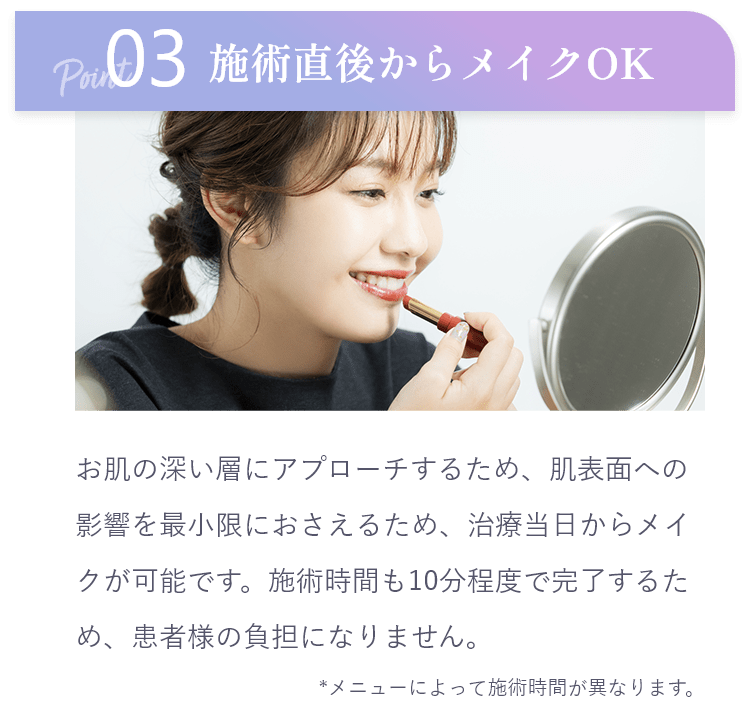 ハイフの施術直後からメイクをすることが可能です。
