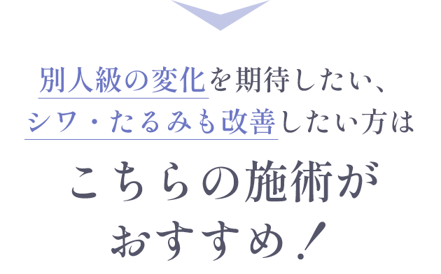 施術直後から引き上がりますが、コラーゲン生成が活性化した約3週間以降から、さらにリフトアップの効果を実感いただけます。
