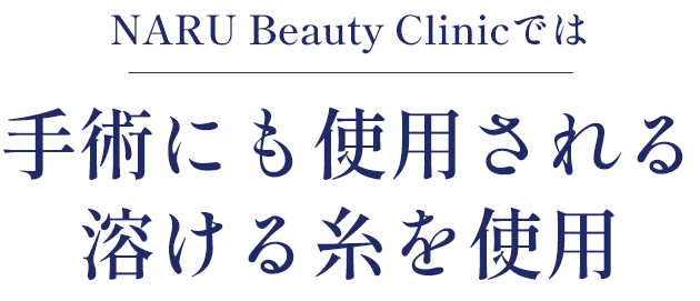 施術では、外科手術にも使用されている溶ける糸を使用しています。従来の糸に比べて1/2という細さながら、糸についているコグ(棘)でたるみを引き上げた状態で維持・固定を可能にします。